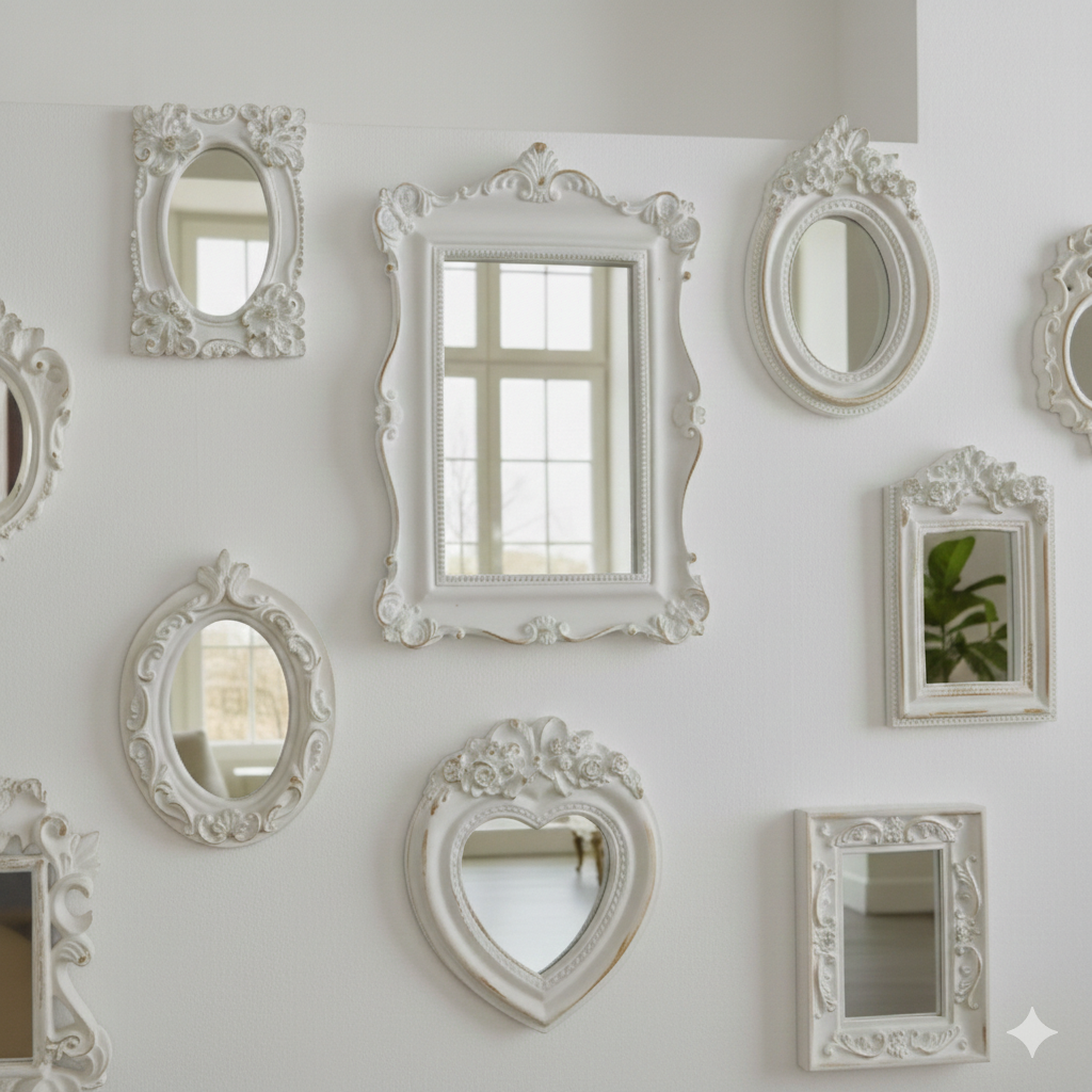 Transforme seu ambiente com esse Kit de Molduras com Espelho, perfeito para compor uma decoração sofisticada e cheia de charme! 💛 Fabricadas em resina poliéster de alta qualidade, essas molduras possuem acabamento impecável e pintura profissional.